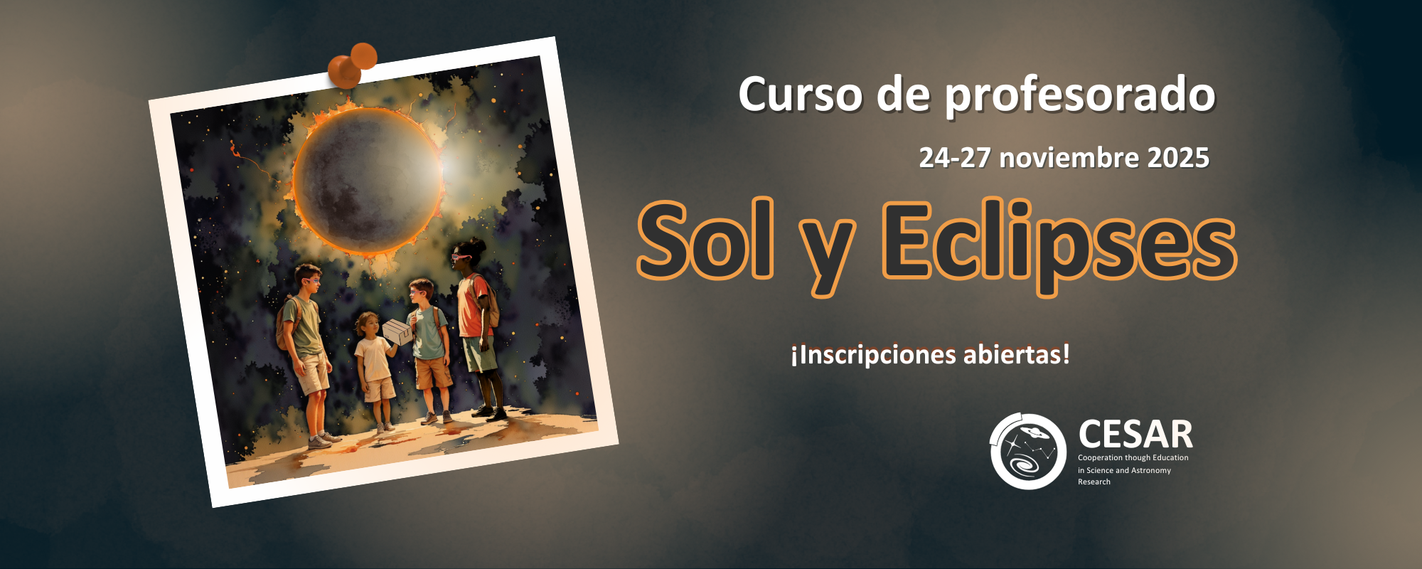 The CESAR Team offers this 4th teacher workshop, in Spanish, designed in collaboration with the teacher centres CTIF (Madrid), CFIRE (Valencia) and CEUCD (Canarias) and the research institutions ESA, CAB, IAC, IAA and CAC, under the topic The Unknown Cosmos