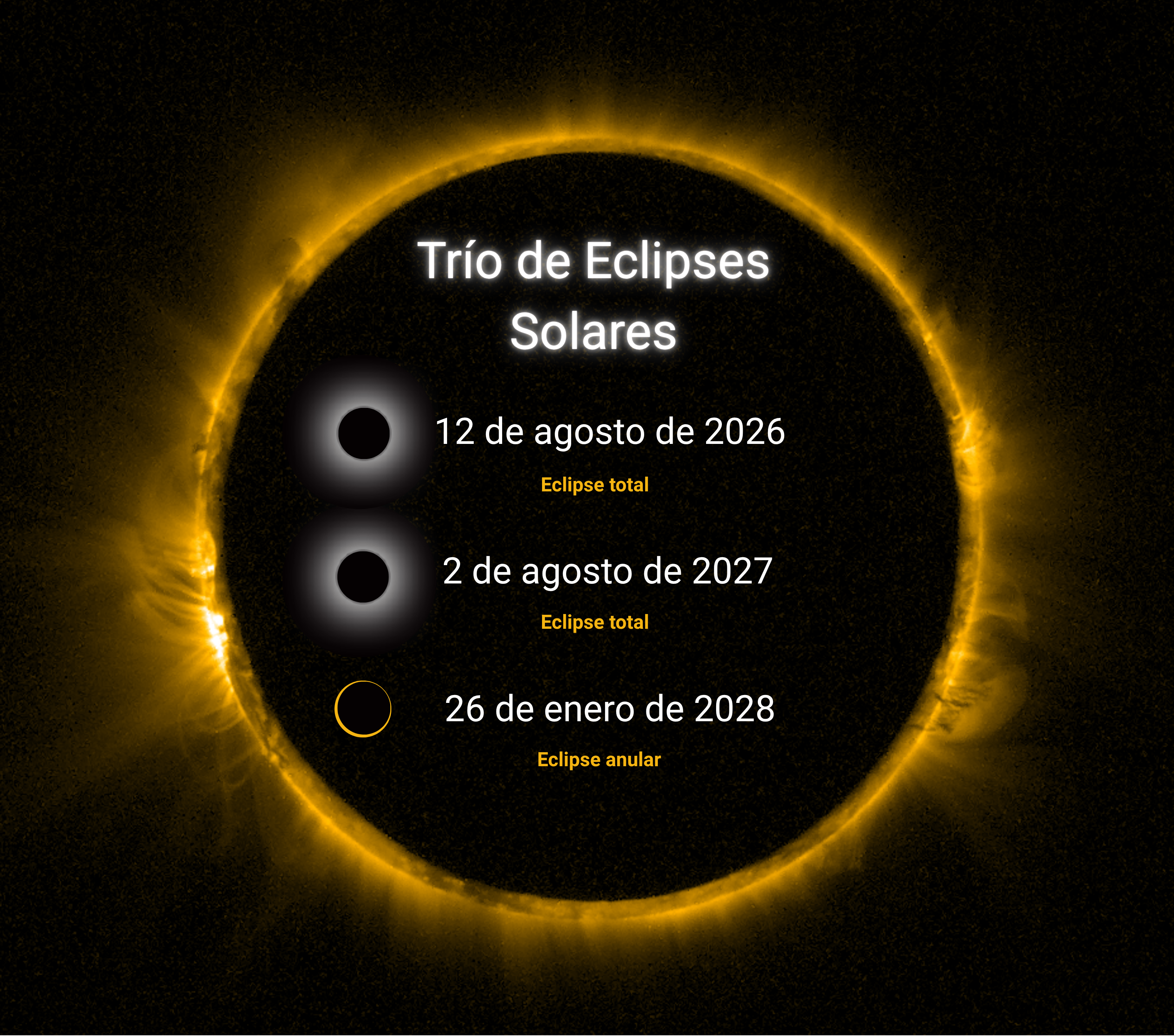 A trio of solar eclipses will cross the skies of the Iberian Peninsula in 2026, 2027, and 2028, offering a unique opportunity to observe one of the most striking and least frequent astronomical phenomena.